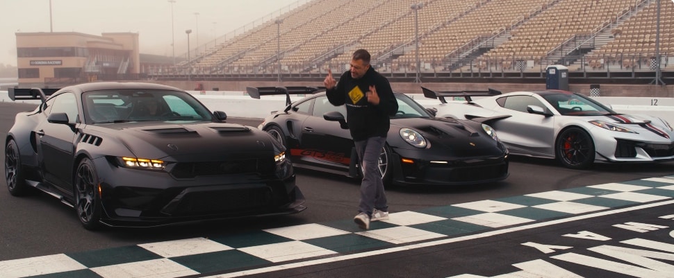 De 815 pk sterke Mustang GTD en de 518 pk sterke 911 GT3 RS hebben aanzienlijk minder vermogen dan de 1.064 pk sterke Corvette ZR1, maar ze hebben DRS (Drag Reduction Systems) – actieve aerodynamische vleugels en flaps waarmee ze enorme downforce in de bochten kunnen genereren, maar de luchtweerstand op de rechte stukken kunnen verminderen. Is dat genoeg om het vermogensvoordeel van de Corvette te compenseren?