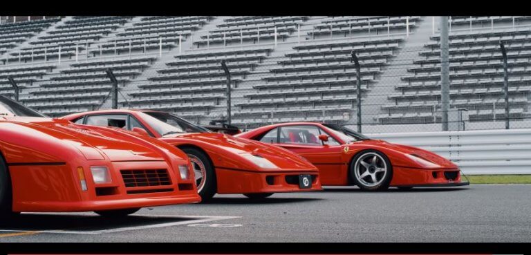288 GTO Evoluzione, F40 en F40 LM samen op het circuit