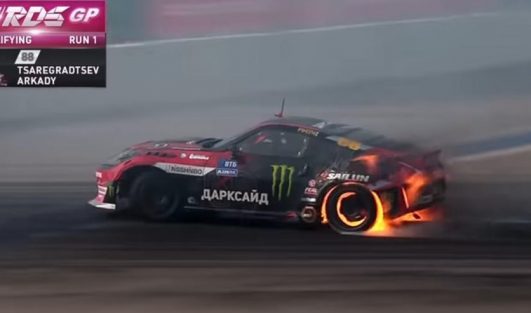 Nissan 370Z vat vlam tijdens driften