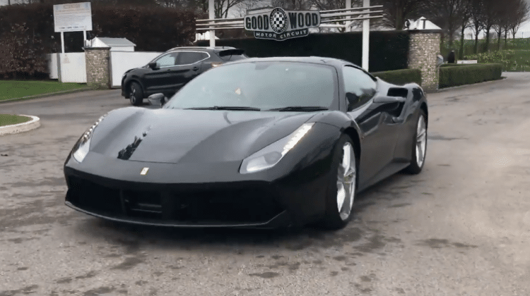 Ferrari 488 crasht bijna bij het verlaten van het Goodwood circuit