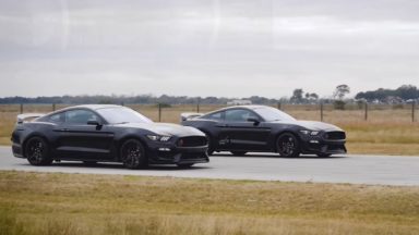 Dragracing Video's Mustang Shelby GT350R racet tegen een supercharged variant van Hennessey29 december 2019