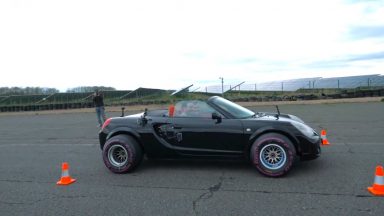Mazda MX-5 doet Fast & Furious stunt na met vrachtwagen