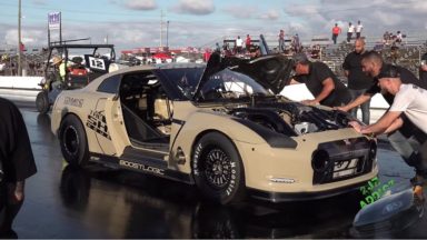 Nissan GT-R blaast inlaatspruitstuk op tijdens GTR World Cup