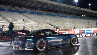 AWD 4-Rotor Mazda RX-7 klokt een 9 sec pass op de kwart mijl