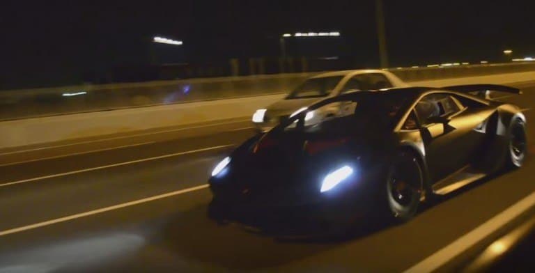 Lamborghini Sesto Elemento rijdt illegaal over de snelweg