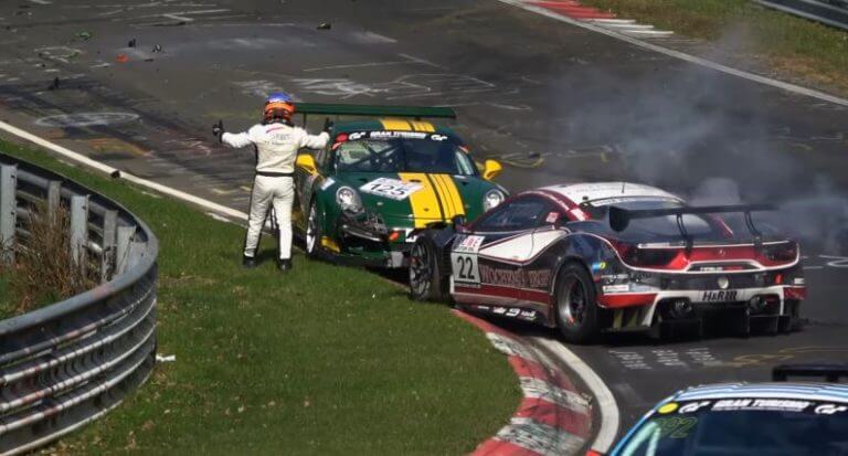 Ferrari 488 GT3 crasht hard waarna coureur verhaal gaat halen